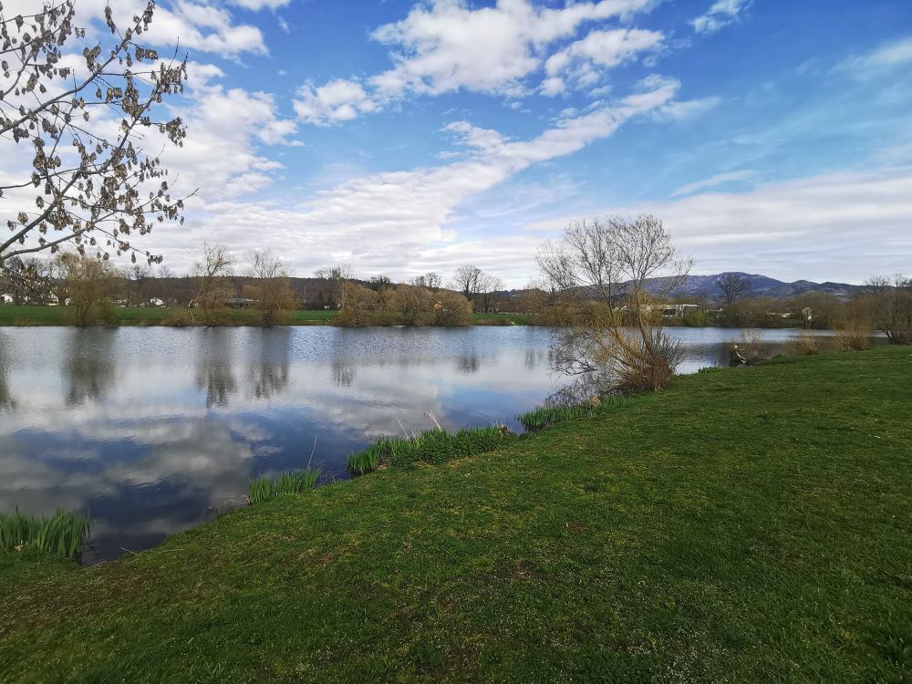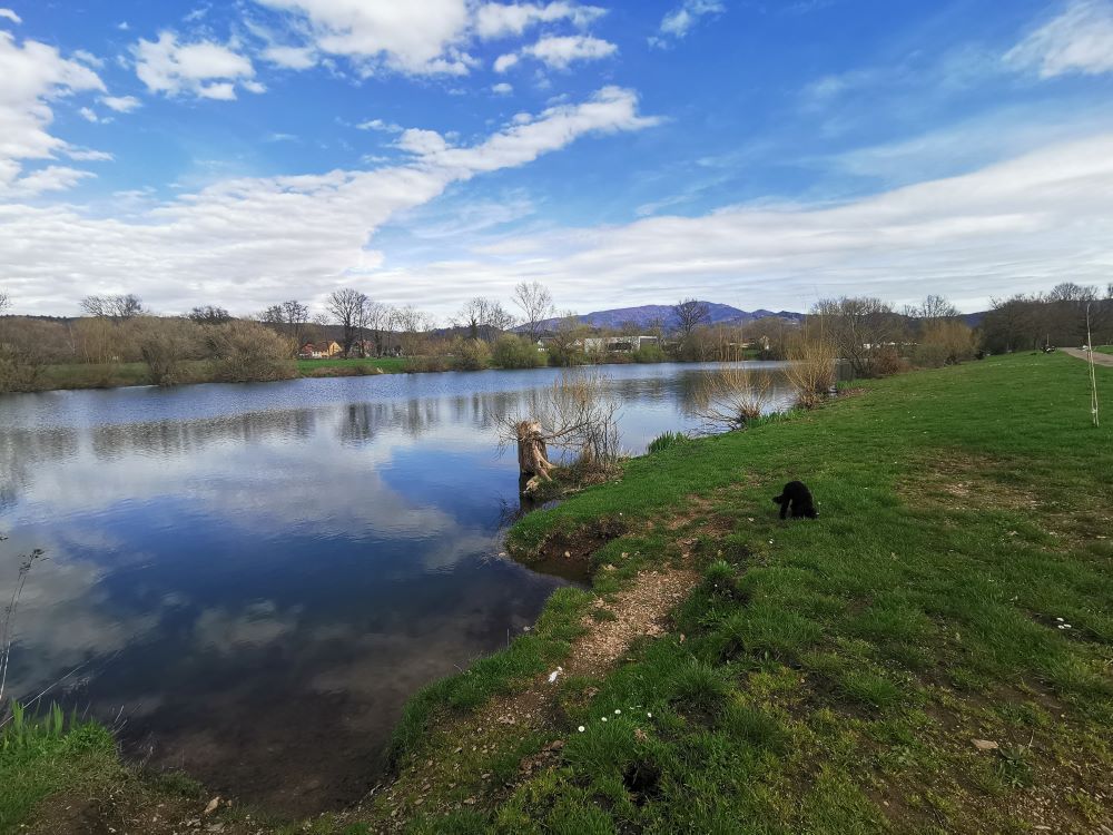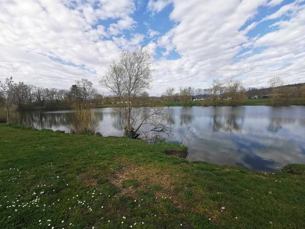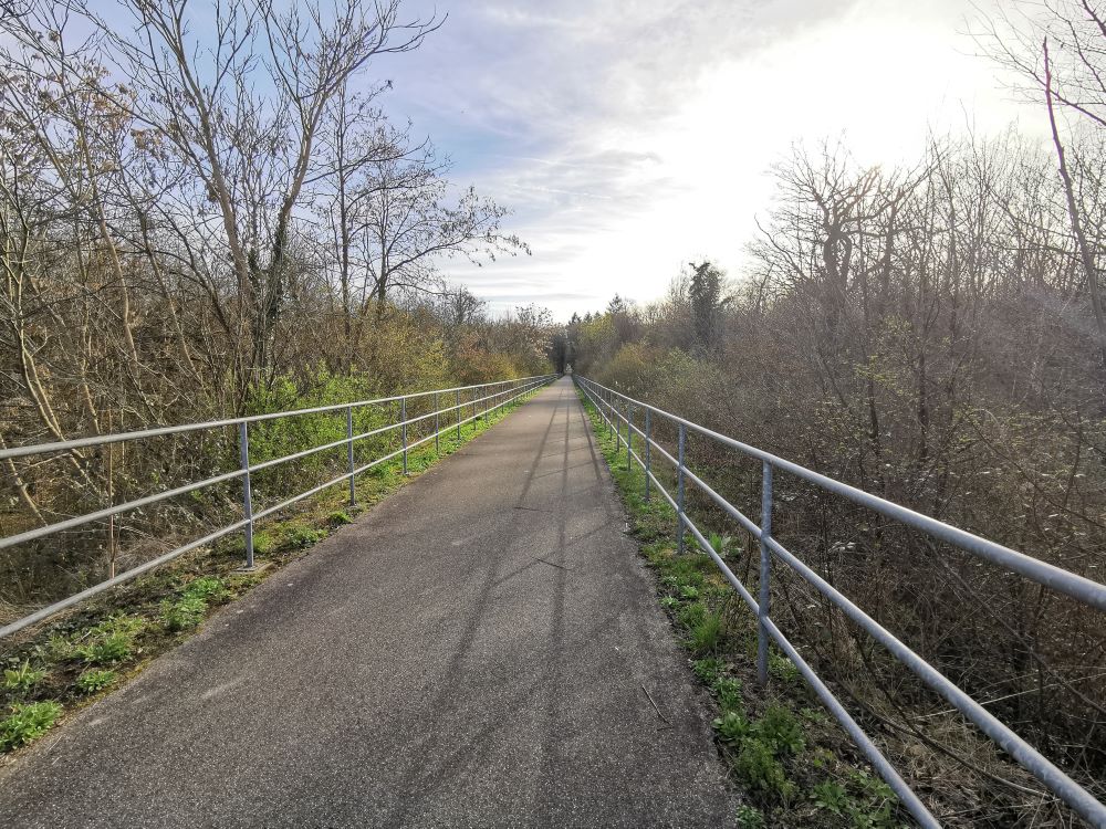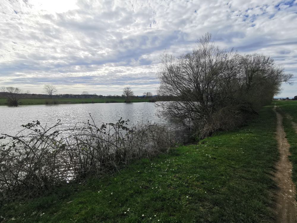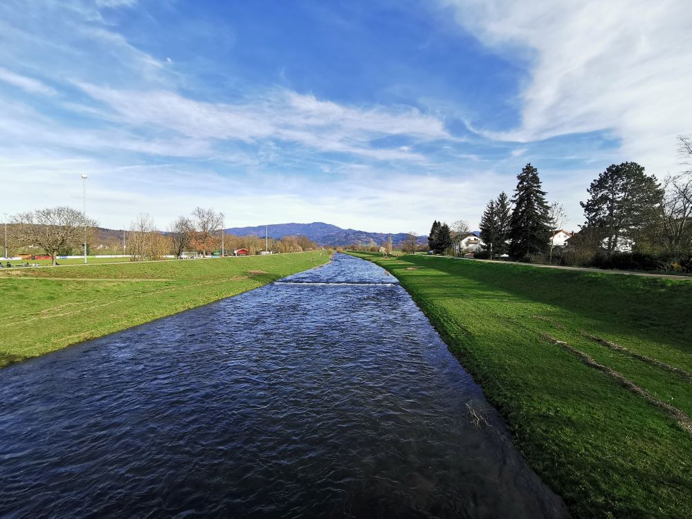 Baugrundstück mit angrenzendem FeldStreuobstwiese mit Blick zum GrundstückBlick auf WasserFelder angrenzend ans BaugrundstückFeld mit Storchenturm im HintergrundSpazierweg / Radweg neben dem GrundstückGeteerter Rad- und Spazierweg Richtung Denzlingen/ Freiburg durch den Wald
